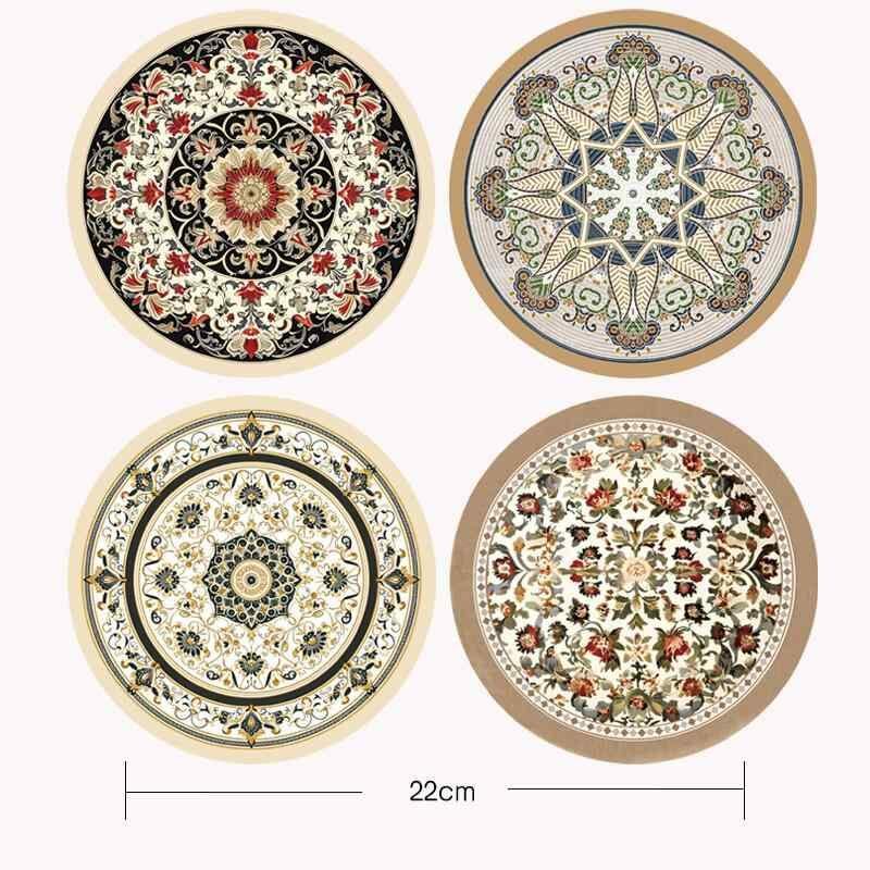 コースター ランチョンマット 円形 宮廷風 レトロ アンティーク調 花柄 ボタニカル柄 キッチン ダイニング 食卓 防水 耐摩耗 滑り止め 天然ゴム