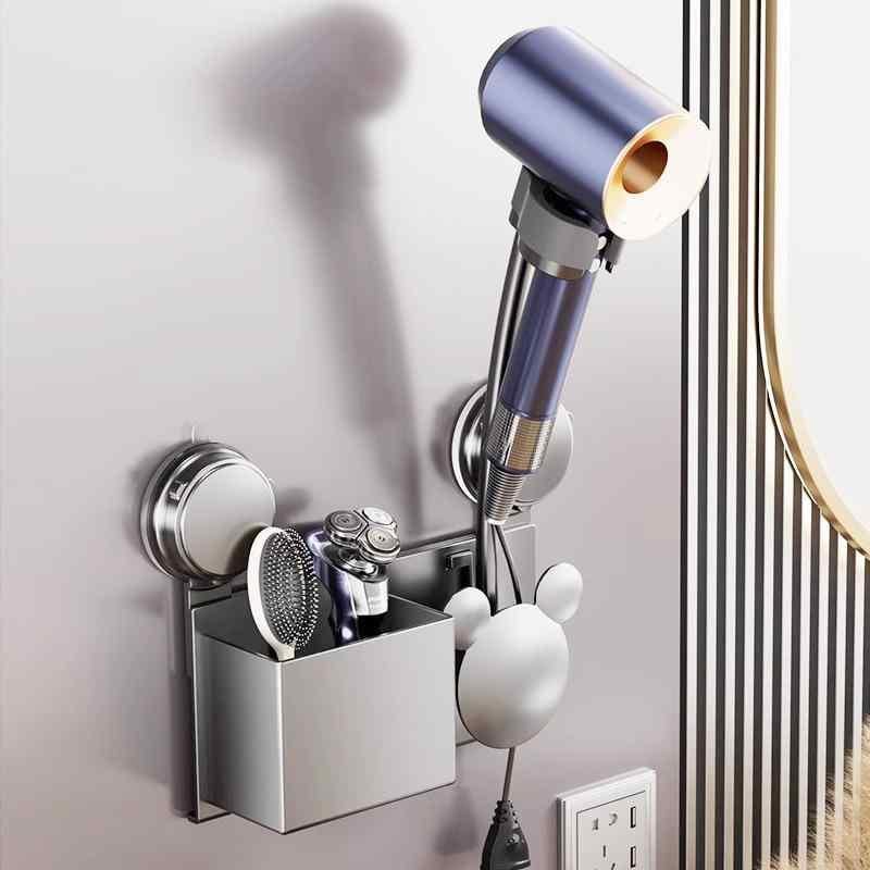 ドライヤースタンド 強力吸盤 壁掛け ハンズフリー ホルダー 穴あけ不要 収納ラック 洗面所 浴室 バスルーム アルミ製 賃貸 汎用 高耐荷重 省スペース ガンメタル オフホワイト