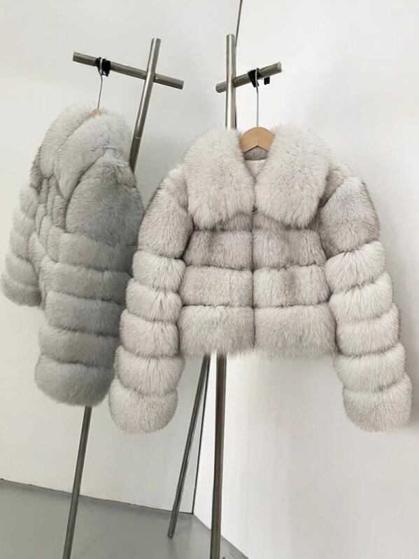 アウター レディース 女性用 フォックスファー ショート丈 コート ジッパー 長袖 襟付き 保温性 上品 エレガント 秋冬 オフホワイト ブラック