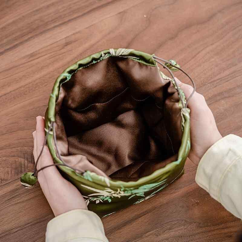 収納袋 錦織り 和風 厚手 大容量 手提げバッグ 銀瓶 急須 ティーポット 湯呑み ティーカップ 携帯 トラベル 保護ポーチ