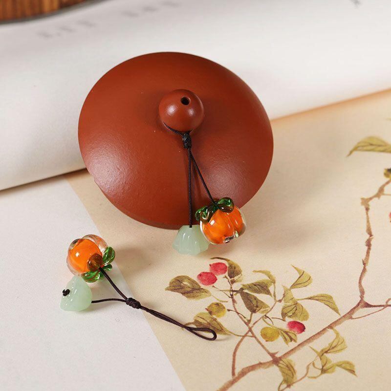 茶器 紫砂ティーポット 蓋飾り 柿モチーフ 開運招福 チャーム 縁起物 幸運を呼ぶ 和風 マルチクリップ 飾り紐 ミニペンダント おしゃれ かわいい ティータイム