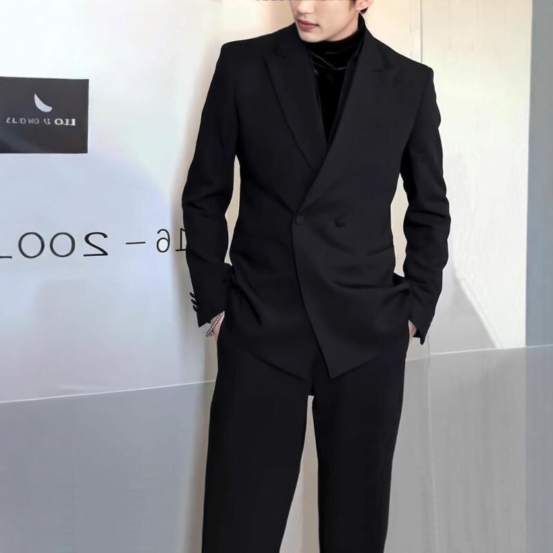 スーツ メンズ 春秋 モード系 高級感 韓国風 カジュアル ビジネス セットアップ ブラック テーラードジャケット デザイン ポリエステル スリムフィット イージーケア