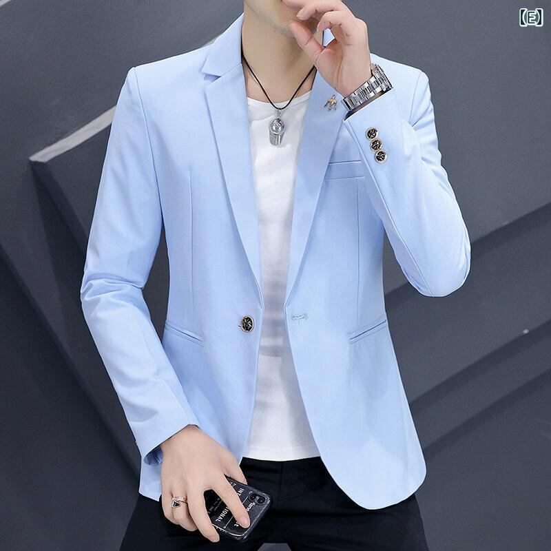 ジャケット メンズ カジュアル 韓国風 スリムフィット テーラードジャケット ポリエステル 10代 20代 若者 スタイリッシュ 個性的 普段使い 通勤 通年