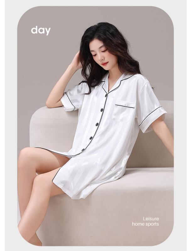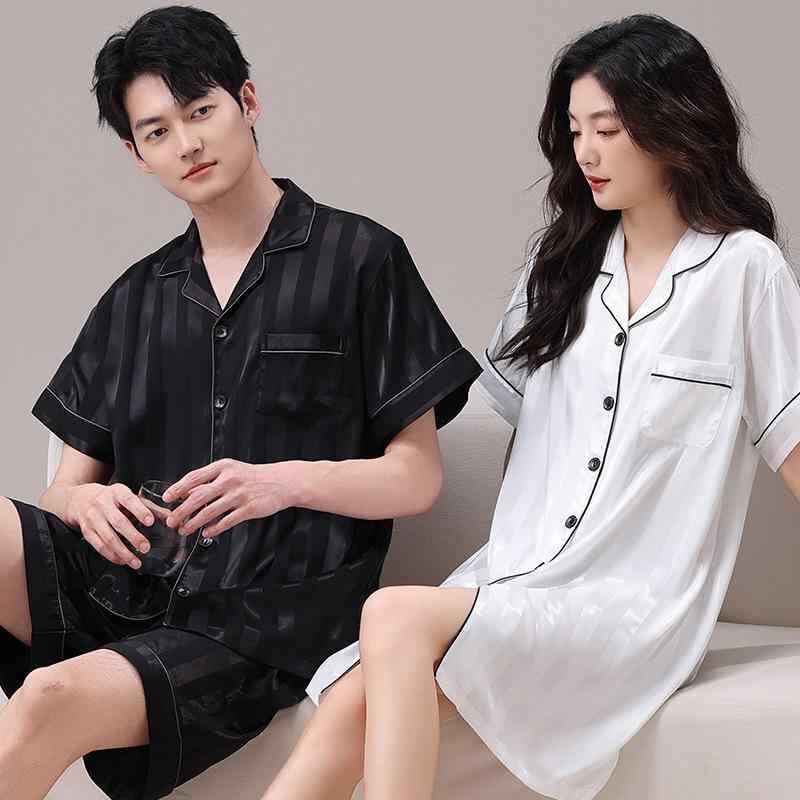 パジャマ カップル ペア 夏 薄手 接触冷感 半袖 開襟 前開き ショートパンツ スリープドレス ワンピース セットアップ 男女兼用 ルームウェア 快適 涼しい 通気性 伸縮性 吸湿速乾 高級感 カジュアル 部屋着 ナイトウェア