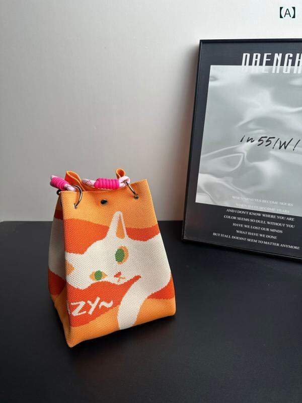 バッグ ニット トートバッグ ショルダーバッグ ハンドバッグ レトロ 千鳥格子柄 バケット型 普段使い マグネットボタン開閉 ポリエステル 携帯ポケット付き カジュアル 鞄