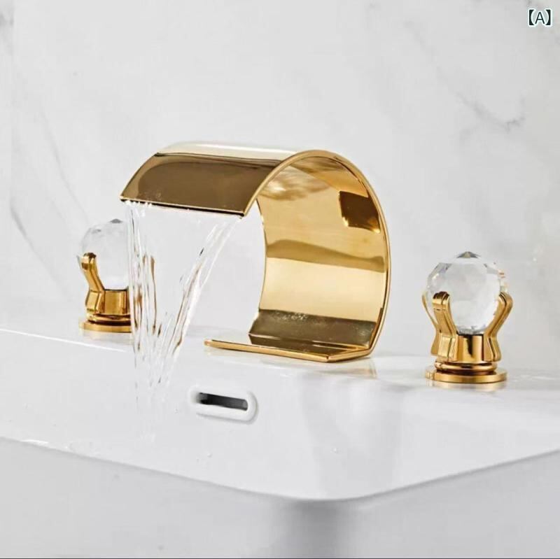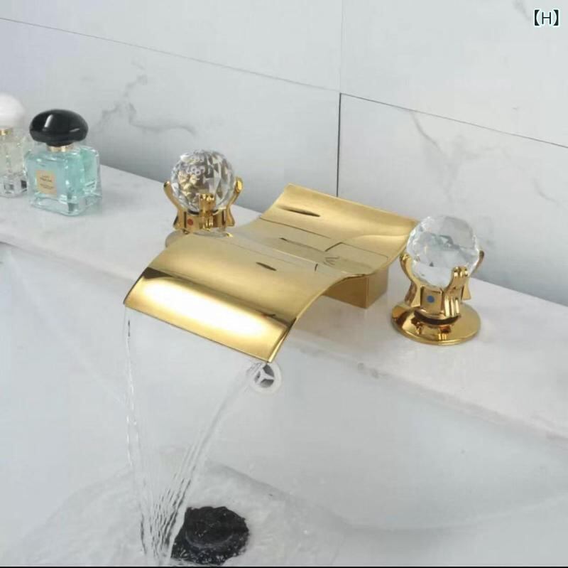 蛇口 浴室 洗面所 浴槽用 真鍮製 3穴 3ホール デッキマウント 浴槽縁設置 分離型 3点セット ゴールド 金色 冷温 混合水栓 電気メッキ加工 モダン シンプル