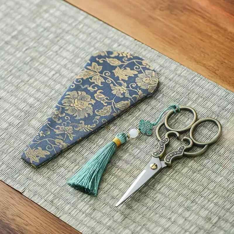 茶道具 レトロ アンティーク 中国風 布製 ファブリック ミニはさみ 鋏 保護 収納ケース ポーチ 小物入れ クラシック おしゃれ 持ち運び 携帯 傷防止 整理用