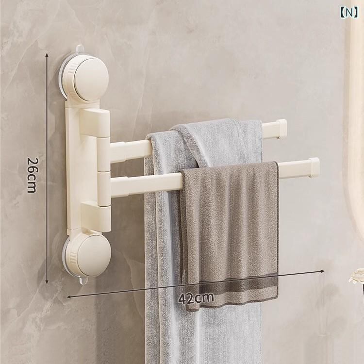タオルハンガー 回転式 吸盤タイプ 穴開け不要 壁掛け 浴室 洗面所 脱衣所 収納ラック 折りたたみ式 タオルバー 省スペース 多機能 クリームスタイル