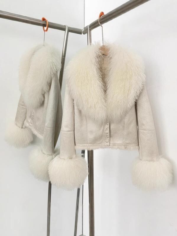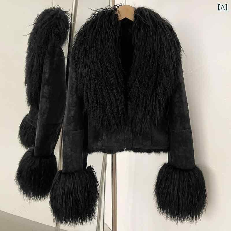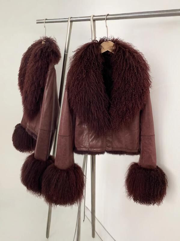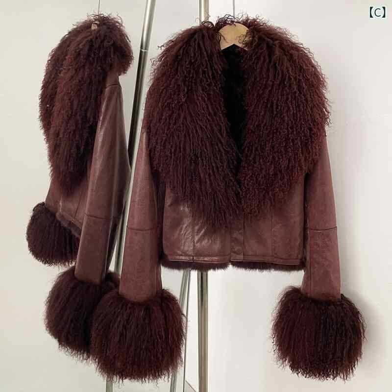 ジャケット レディース スエード調 リアルムートン ボリュームカラー 欧米スタイル 秋冬 上品 ショート丈 長袖 ポケット付き 通勤 オフィス カジュアル 防寒 保温 あったか ブラック ブラウン ワインレッド