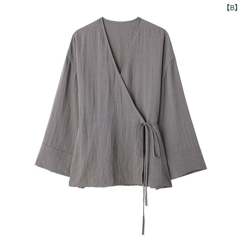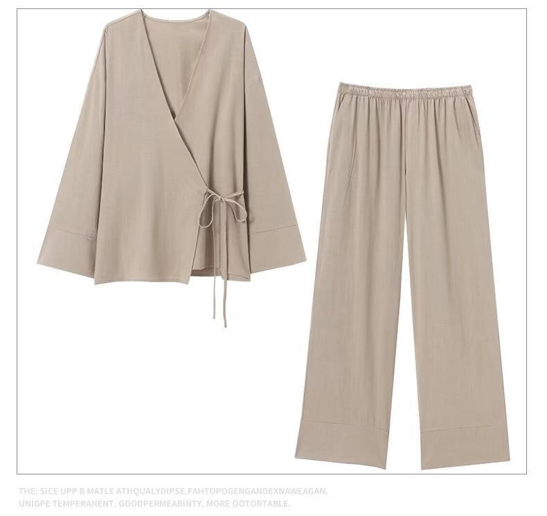セットアップ レディース Vネック ダブルブレスト 和服風 カーディガン 羽織り ゆったり 無地 ロングパンツ カジュアル エレガント きれいめ 上下セット 春夏
