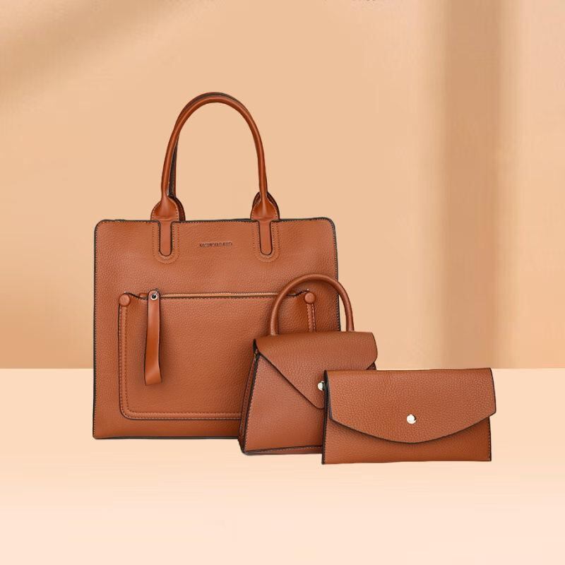バッグ レディース 大容量 PUレザー トートバッグ ショルダーバッグ 斜め掛け 親子バッグ ポーチ付き 都市カジュアル シンプル レトロ 縦型スクエア ファスナー開閉 仕切り 内ポケット デイリーユース 普段使い 春夏 黒 紫 ライトブラウン カーキ