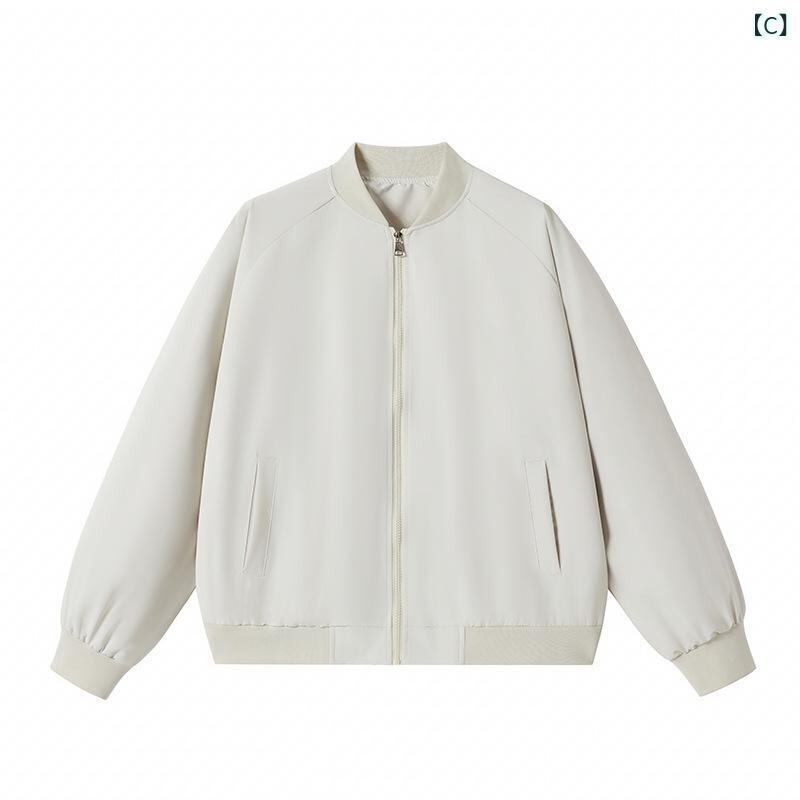 ブルゾン メンズ 春秋 ゆったり ルーズ スタジアムジャンパー ワークジャケット MA-1 アメカジ ストリート 防風 通気性 ジップアップ ペア 高級感 ポリエステル スタンドカラー ブラック カーキ オフホワイト