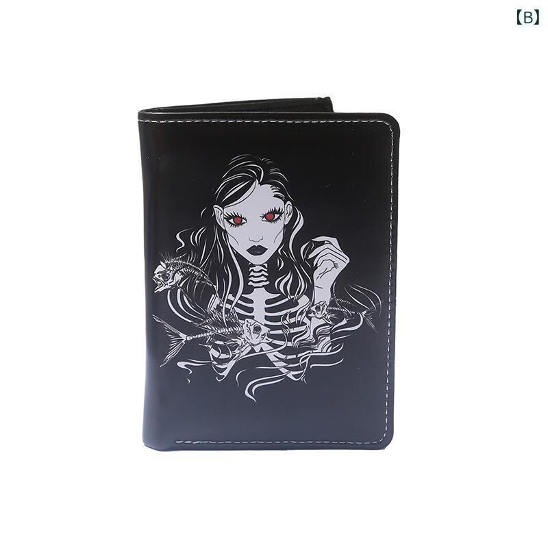 財布 レディース スカル ドクロ アニメ キャラクター 二つ折り ファスナー ショート ウォレット 欧米風 レトロ PVC素材 プリント柄 普段使い