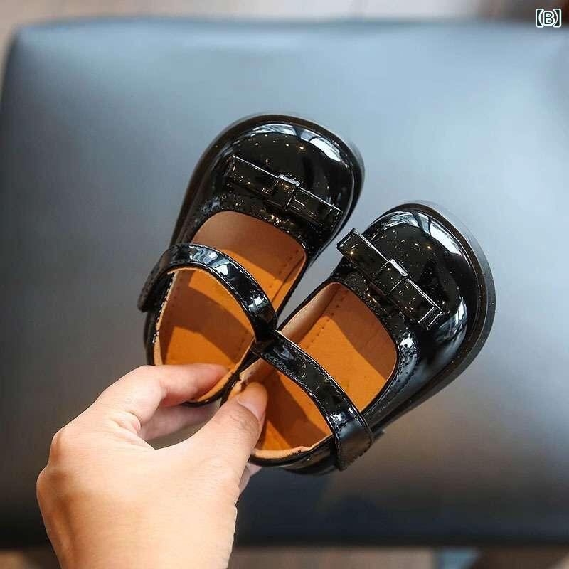 ベビー 女の子 1-3歳 女児 ファーストシューズ よちよち歩き プリンセス風 パンプス フラット ソフトソール 軽量 履きやすい 合皮 革 黒 フォーマル 発表会 入園式 春秋
