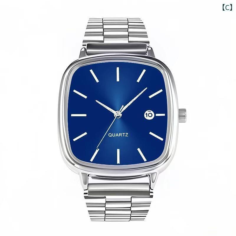 腕時計 ユニセックス ステンレスバンド スクエア型 日付表示 スモールセコンド レトロ ヴィンテージ クォーツ式 高級感 通勤 ビジネス シルバー ゴールド
