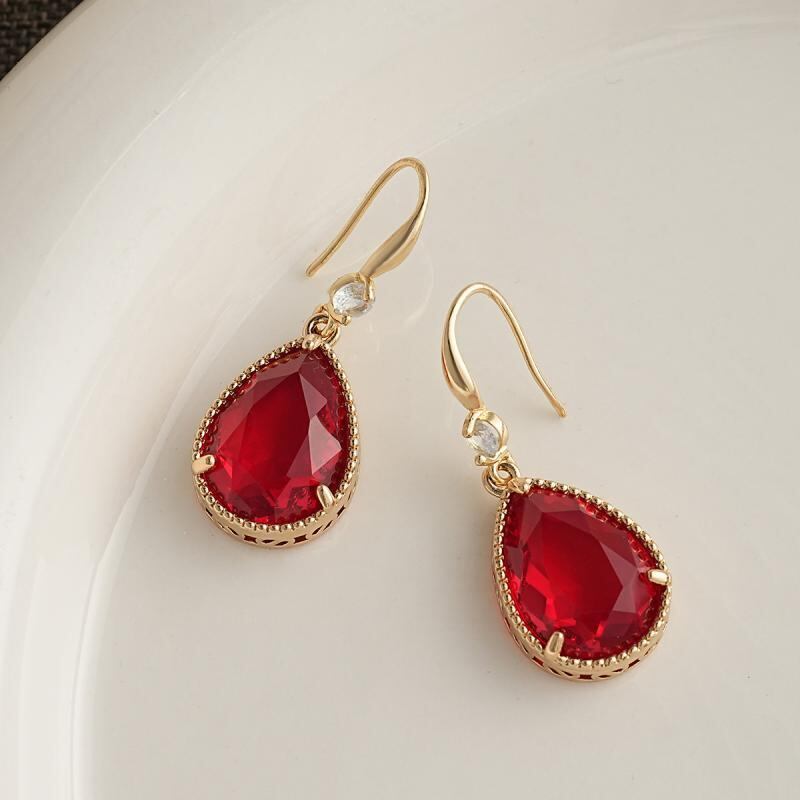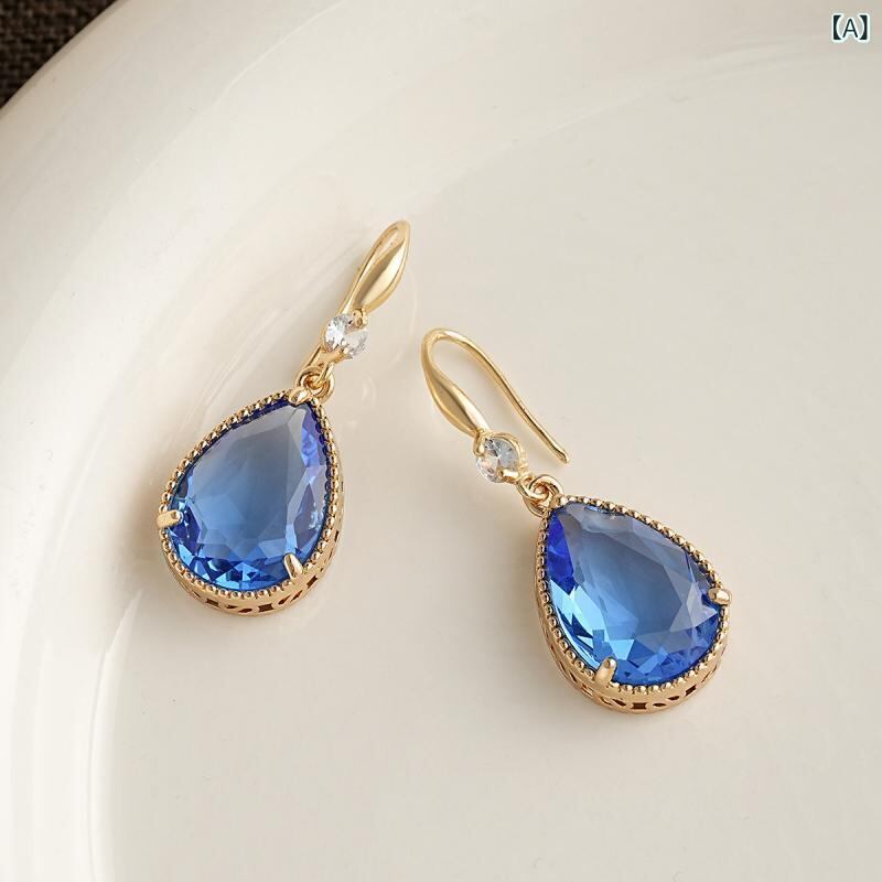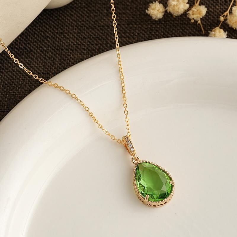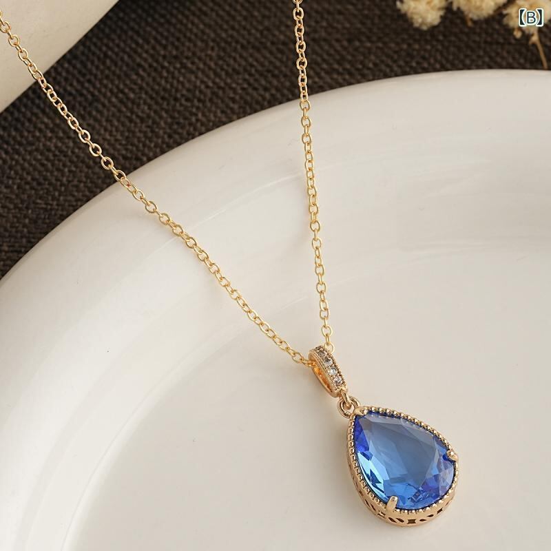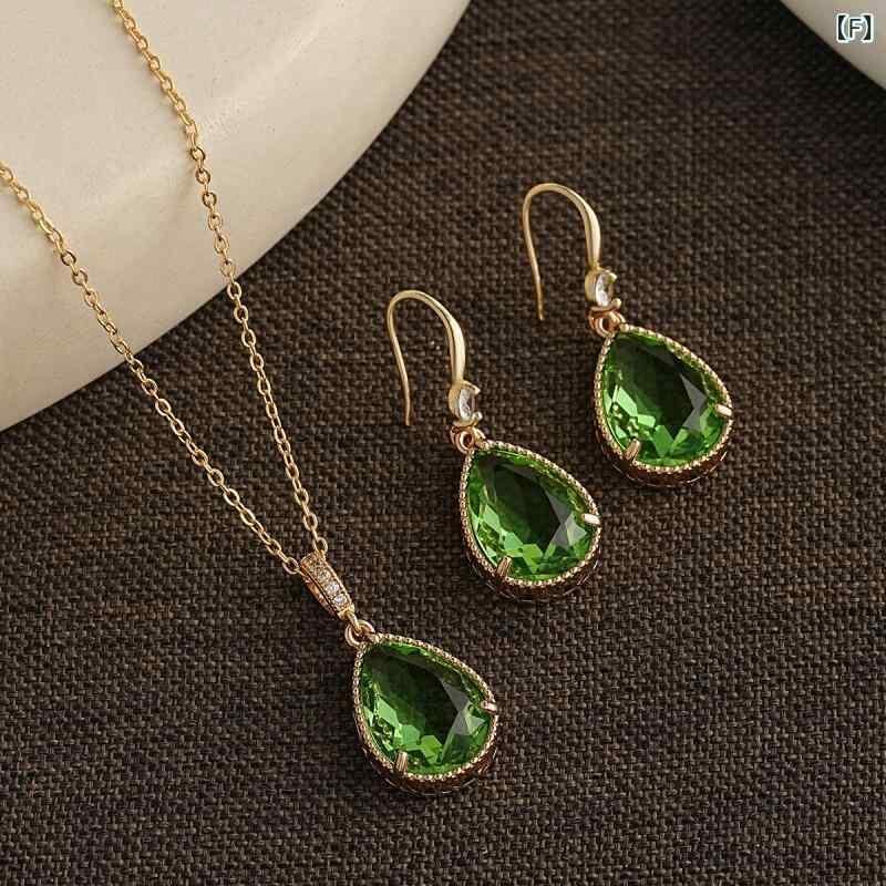 アクセサリーセット レディース レトロ 銅製 金メッキ加工 カラフルクリスタルガラス 水滴 ドロップ型 ステンレスチェーン ピアス イヤリング ネックレス ペンダント 春夏 きれいめ オフィス 普段使い