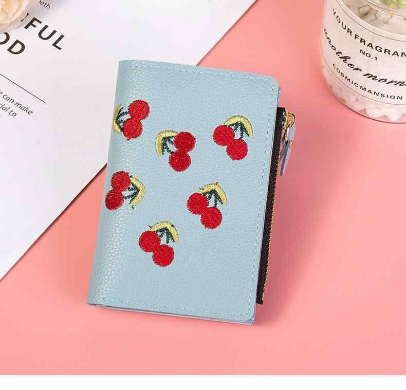 財布 レディース 女性用 韓国風 インスタ風 ミニ二つ折り財布 刺しゅう ライチ型押し PUレザー ラウンドファスナー カードケース 普段使い カジュアル ブラック グリーン ライトブルー ダスティピンク