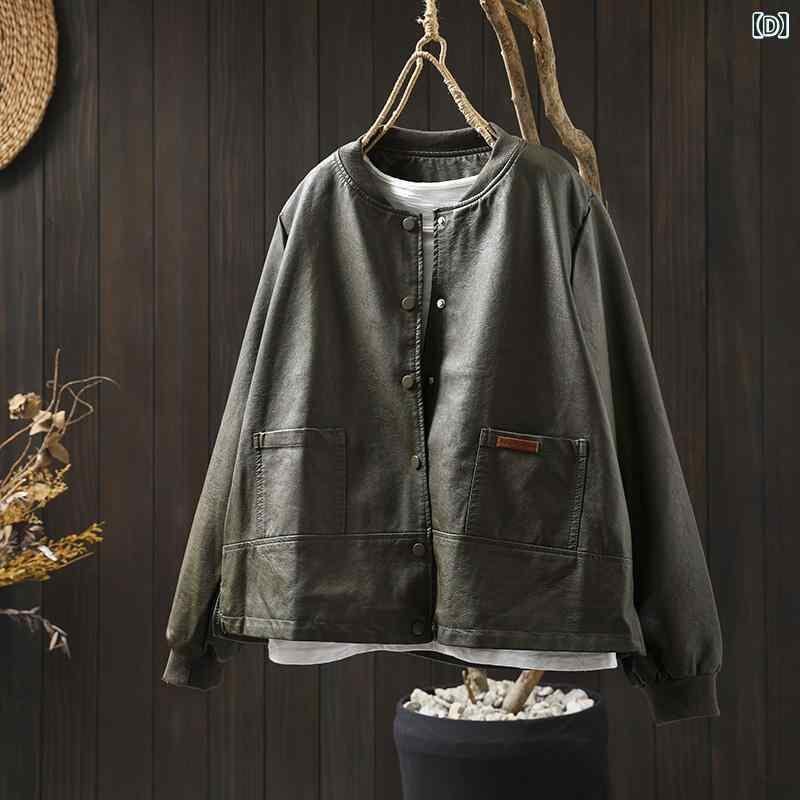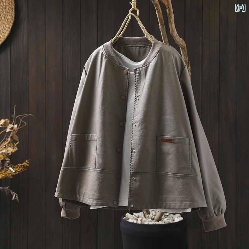 ・袖タイプ: レギュラー・人気要素: ポケット・ネックライン: スタンドカラー・主な素材: PU 100%・フィット: ルーズ・加工: ウォッシュドレザー・袖丈: 長袖・カラー展開: ブラック、グリーン、オフホワイト、マスタードグリーン、レッド、グレー・サイズ展開: M、L、XL・スタイル: きれいめカジュアル・前立て: シングルブレスト・性別: レディース