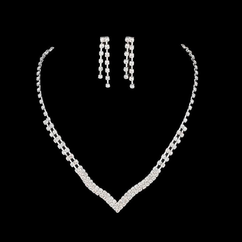 アクセサリーセット レディース シルバー シンプル 高級感 V字 ラインストーン 鎖骨ネックレス タッセル ピアス 電気メッキ 通勤 オフィス 普段使い パーティー フォーマル