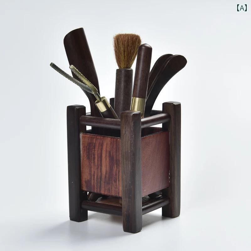 茶道具 黒檀 無垢材 天然木 灯籠型 茶道 6点セット 茶器 茶具 茶針 茶筆 茶挟 お茶会 来客 おもてなし お点前 自宅用 上質 高級感 和風 モダン 茶器セット