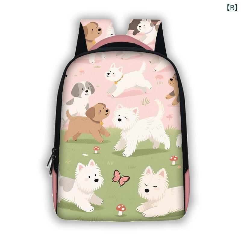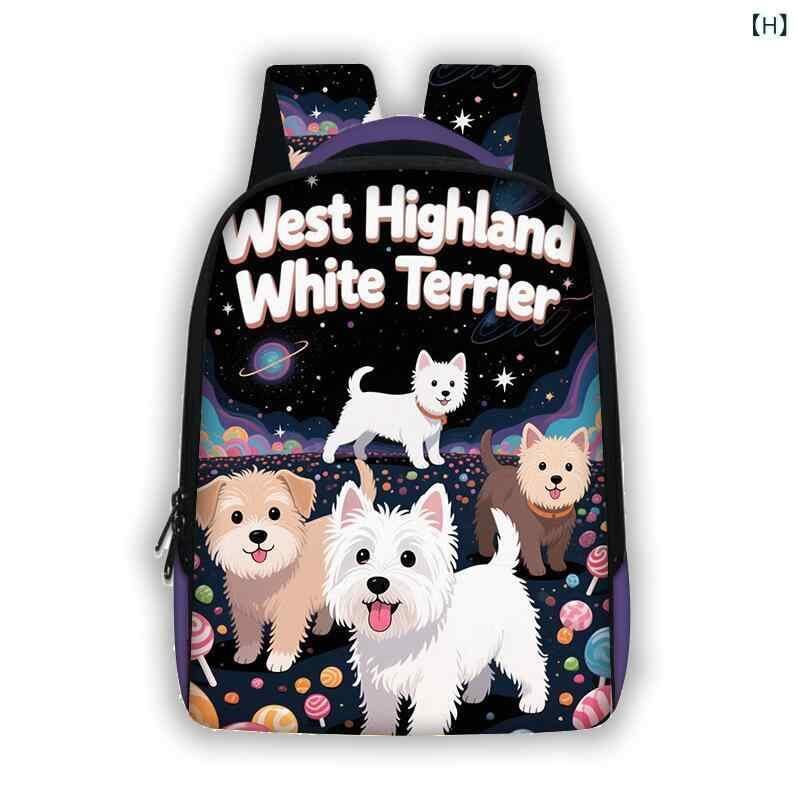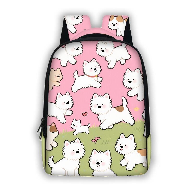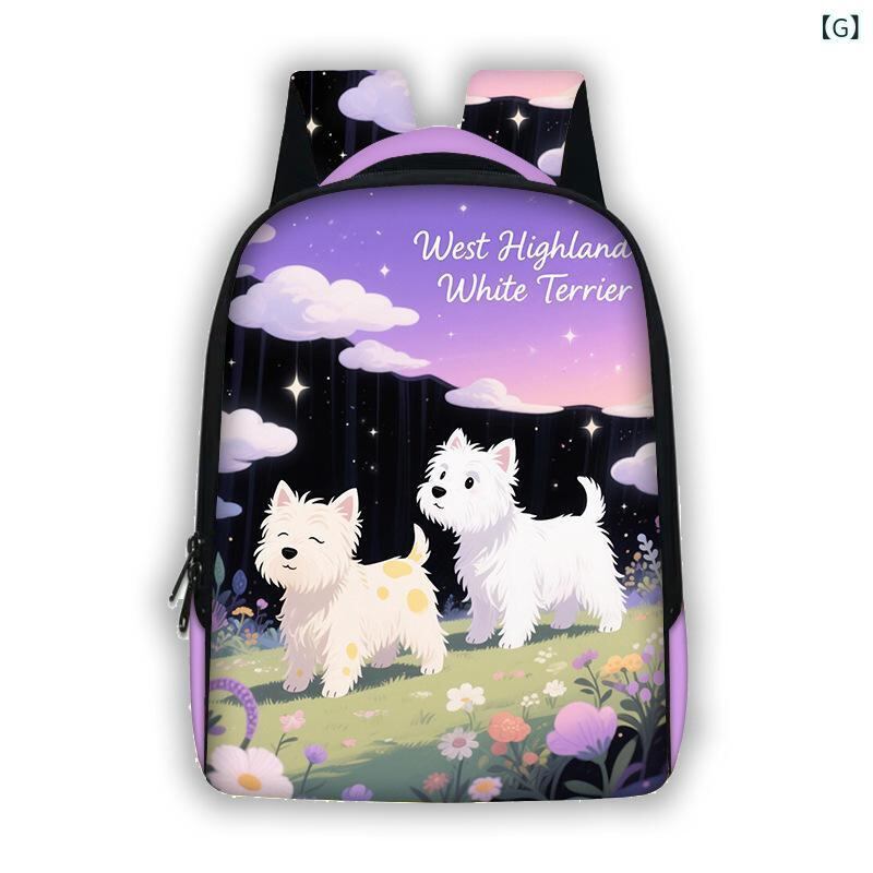 リュックサック キッズ 子供用 幼稚園 園児 通園 男の子 女の子 ウェスティ 子犬柄 キャラクタープリント 総柄 かわいい おしゃれ 通気性 耐摩耗性 負担軽減 バックパック ポリエステル