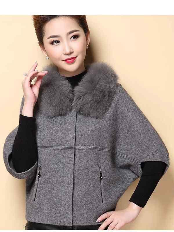 カーディガン レディース 秋冬 ショート丈 ゆったり ドルマンスリーブ フォックスファー襟 ジップアップ 上品 エレガント きれいめ 通勤 オフィス 普段使い ニットアウター