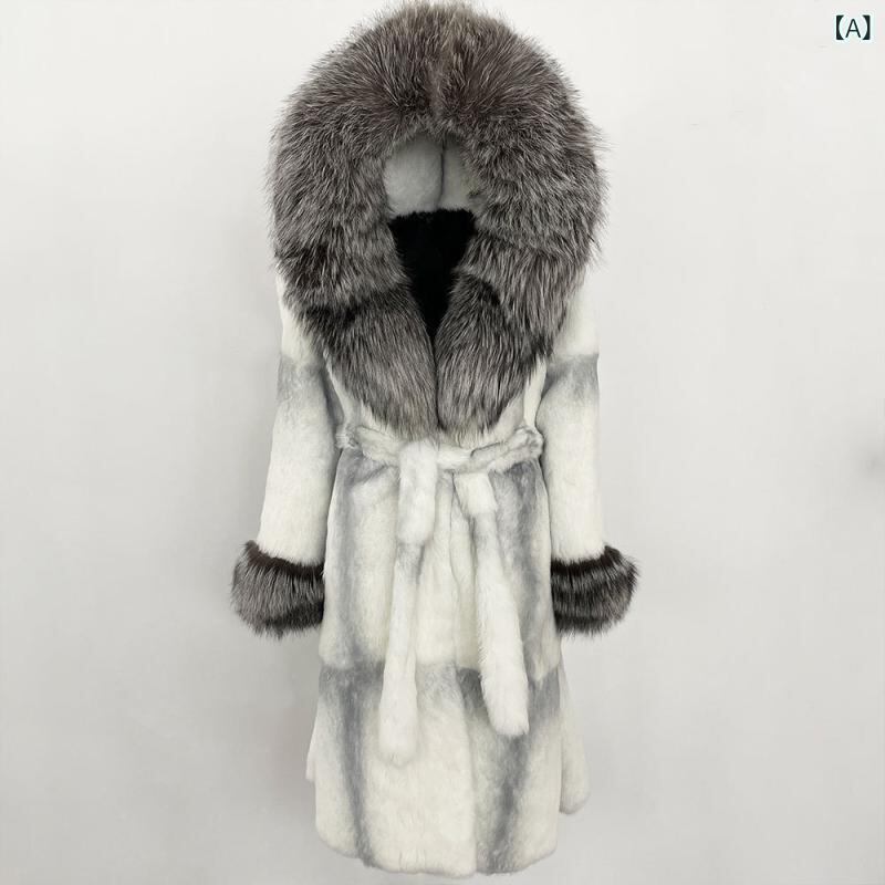 コート レディース 秋冬 ラビットファー フォックスファー襟 ロング丈 長袖 ウエストベルト 防寒 保温 上品 エレガント きれいめ 高級感 通勤 オフィス お出かけ ホワイト系 アウター