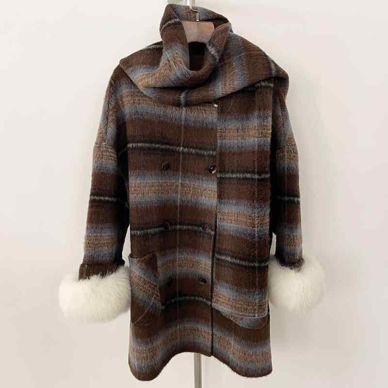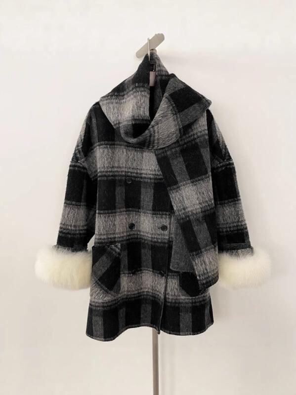 コート レディース 秋冬 チェック柄 ケープ ポンチョ アウター ミドル丈 ウール カシミヤ混紡 高級感 低身長向け 韓国風 レトロ Vネック 長袖 ダブルボタン 中厚手 上品 エレガント 通勤 お出かけ