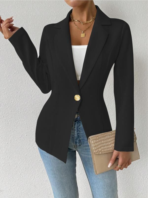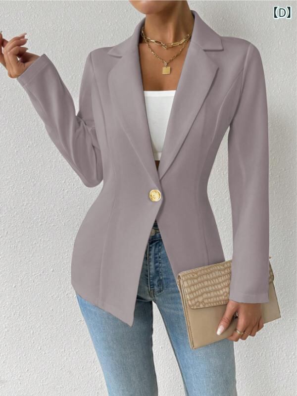 テーラードジャケット レディース 女性用 欧米風 エレガント 上品 ロングベルト付き 無地 長袖 スリムフィット ミドル丈 襟付き ポリエステル スーツ生地 通勤 オフィス ビジネス フォーマル カジュアルアウター