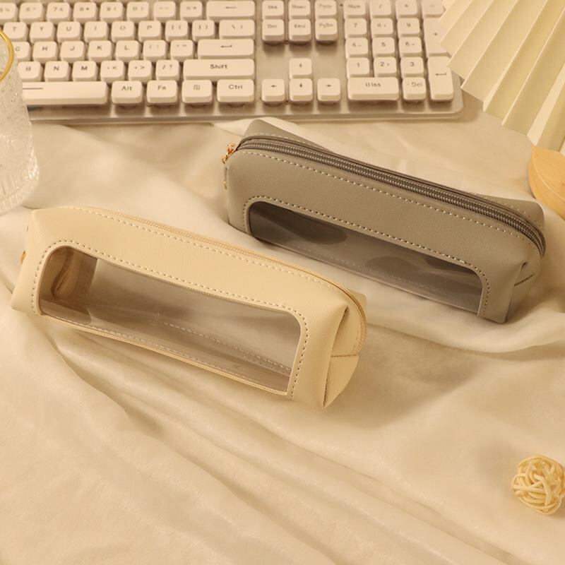 ペンケース ユニセックス 学生用 男女兼用 PUレザー 合皮 配色切り替え 韓国風 おしゃれ 携帯 筆箱 通勤 通学 ビジネス オフィス 紺 茶色