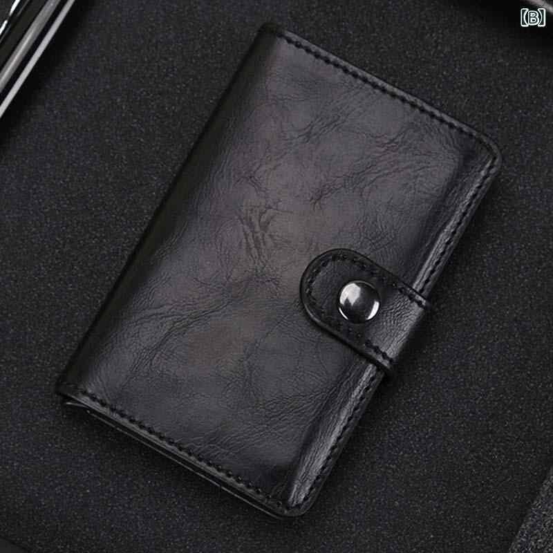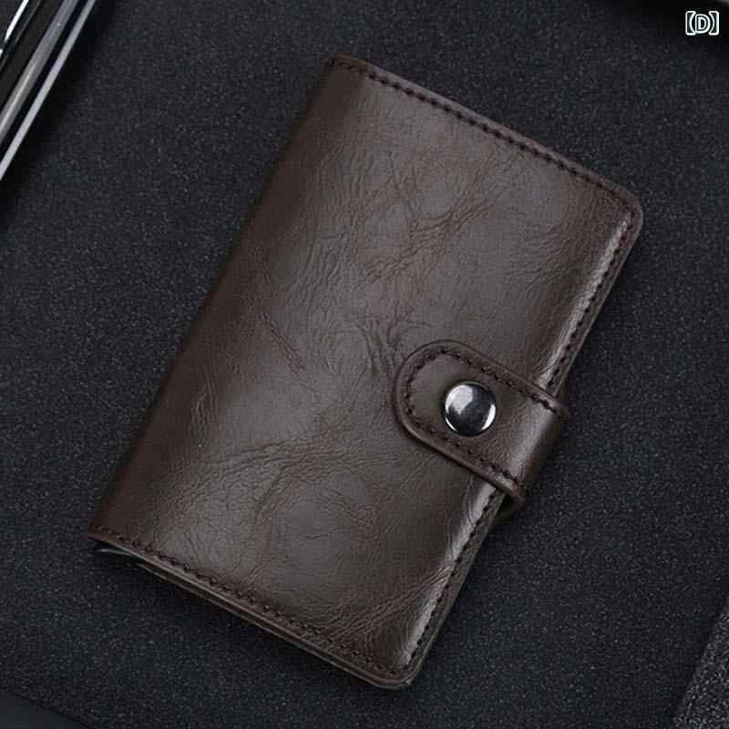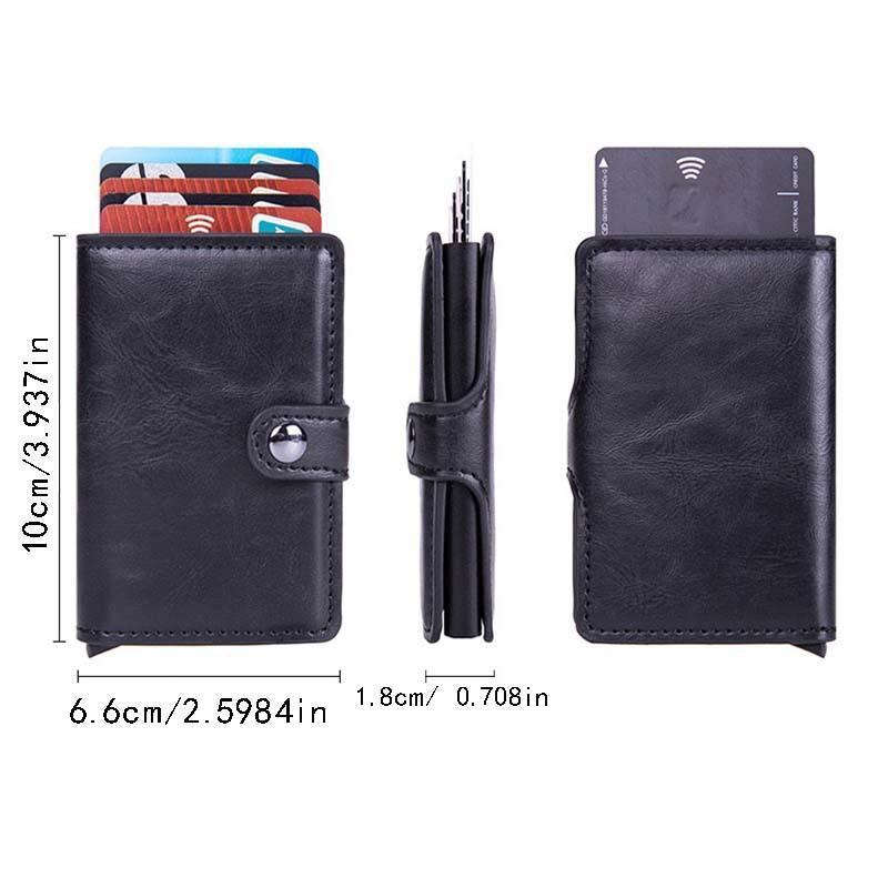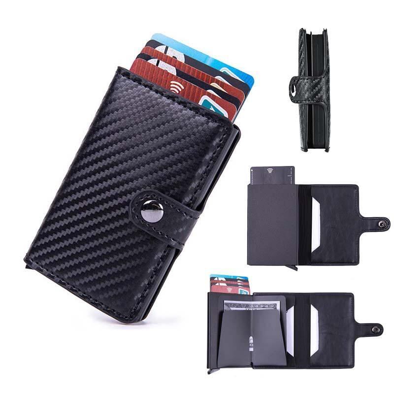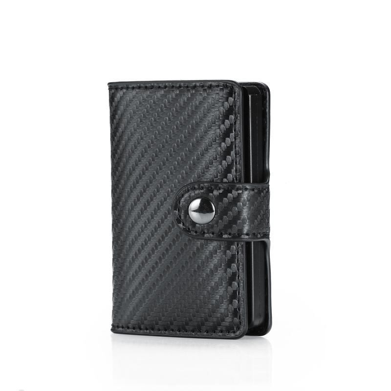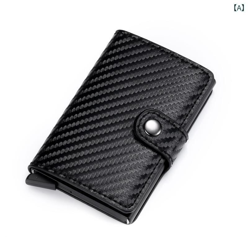 財布 メンズ 男性用 自動ポップアップ式 スライド式 カードケース 小銭入れ コインケース カーボンファイバー アルミ合金 PUレザー スキミング防止 RFID コンパクト スリム チェック柄 カーボンブラック 黒 茶色 カフェ