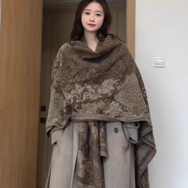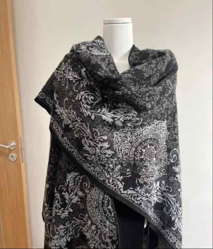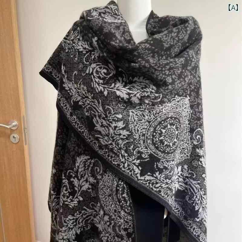 ポンチョ 男女兼用 ユニセックス 民族調 エスニック柄 スリット入り ポリエステル 防寒 保温 ロング丈 ケープ ショール ストール 旅行 普段使い アウトドア ファッションアイテム