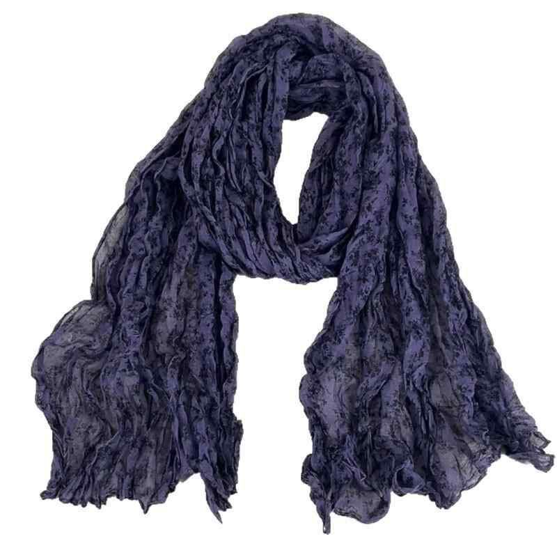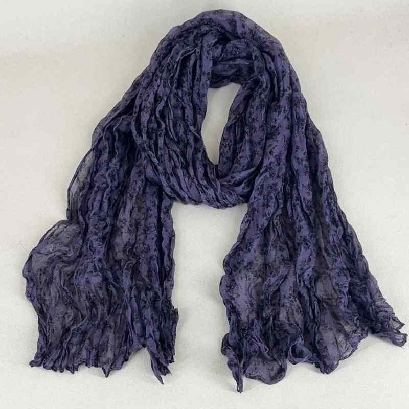 ストール レディース 春夏 綿麻 小花柄 プリーツ レトロ ナチュラル ロング スカーフ マフラー スヌード ネックウォーマー 日よけ 冷房対策 防塵 パープル 快適 肌触り良い