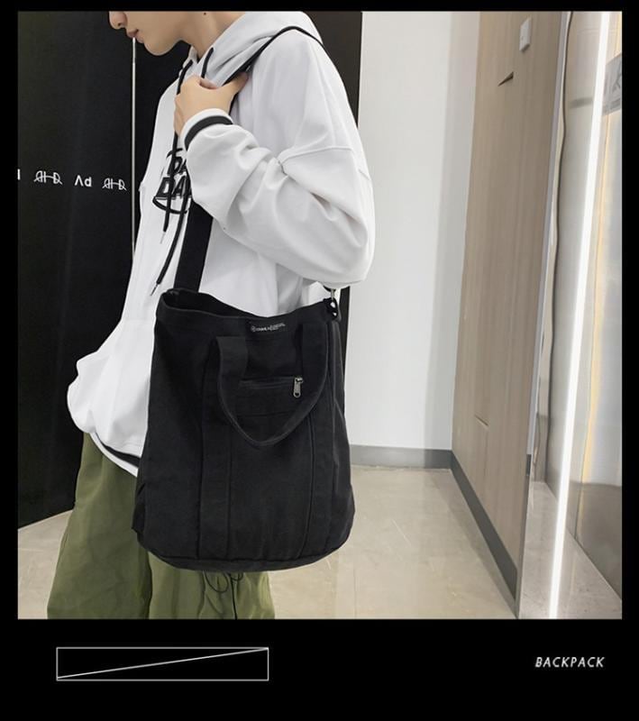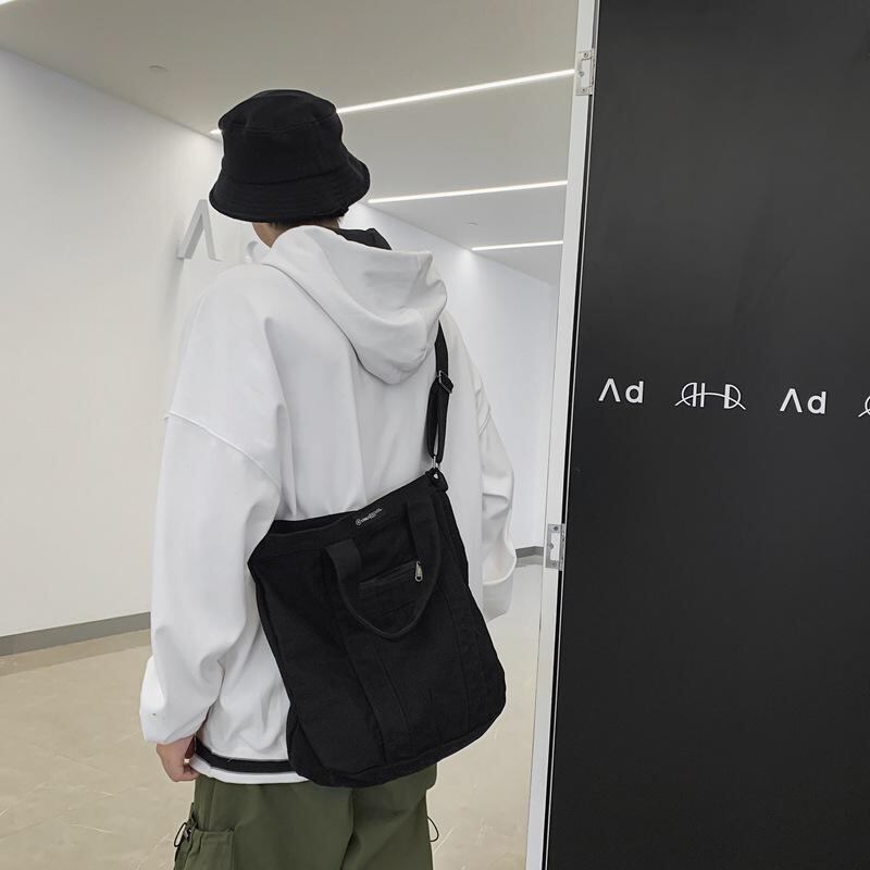 ショルダーバッグ 男女兼用 ユニセックス レトロ 韓国風 カジュアル 縦型 スクエア キャンバス 帆布 斜めがけ 手提げ 学生 通学 通勤 普段使い 大容量 A4収納 内ポケット マグネット開閉 黒 緑 茶 グレー