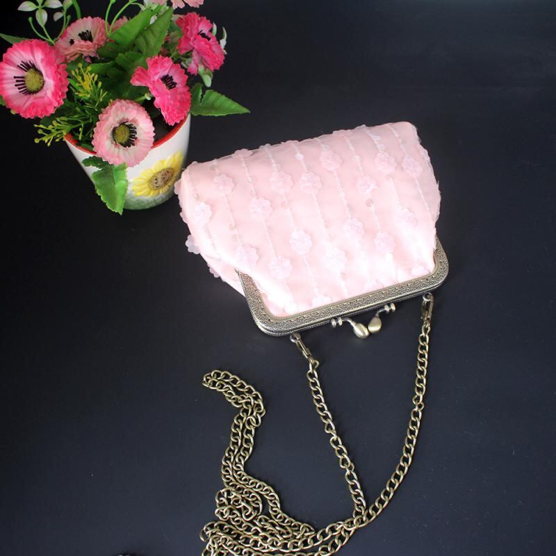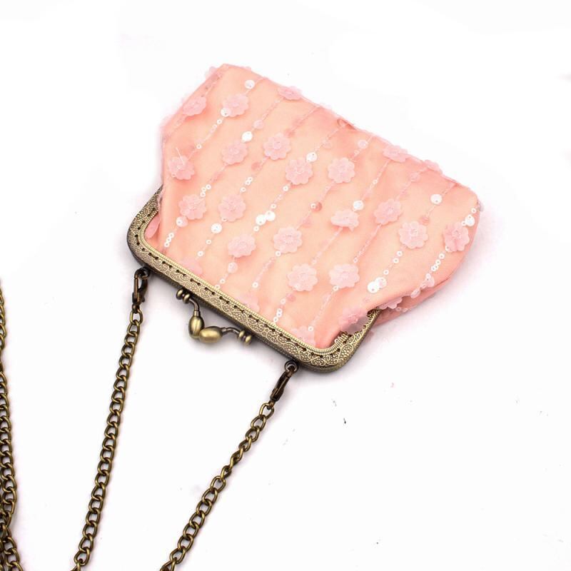 スマホポーチ レディース 春夏 がま口 チェーンショルダー ミニ 鞄 ピンク かわいい レース フラワー ヴィンテージ レトロ PVC デイリーユース
