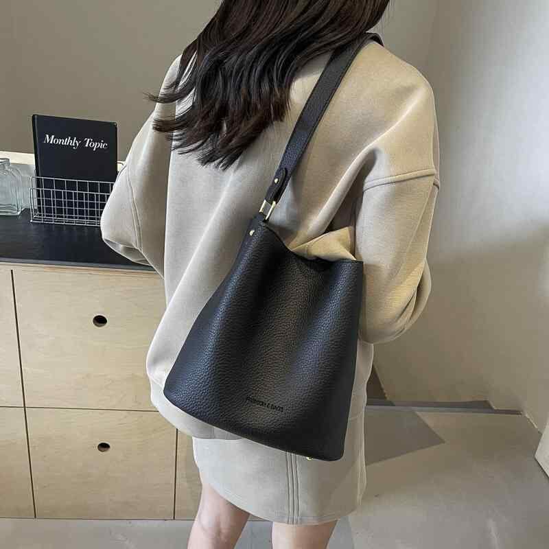 トートバッグ レディース 女性用 バケット型 PUレザー ショルダーバッグ 斜め掛け 肩掛け レトロ ヴィンテージ 高級感 上品 大容量 通勤 オフィス 普段使い ポーチ付き