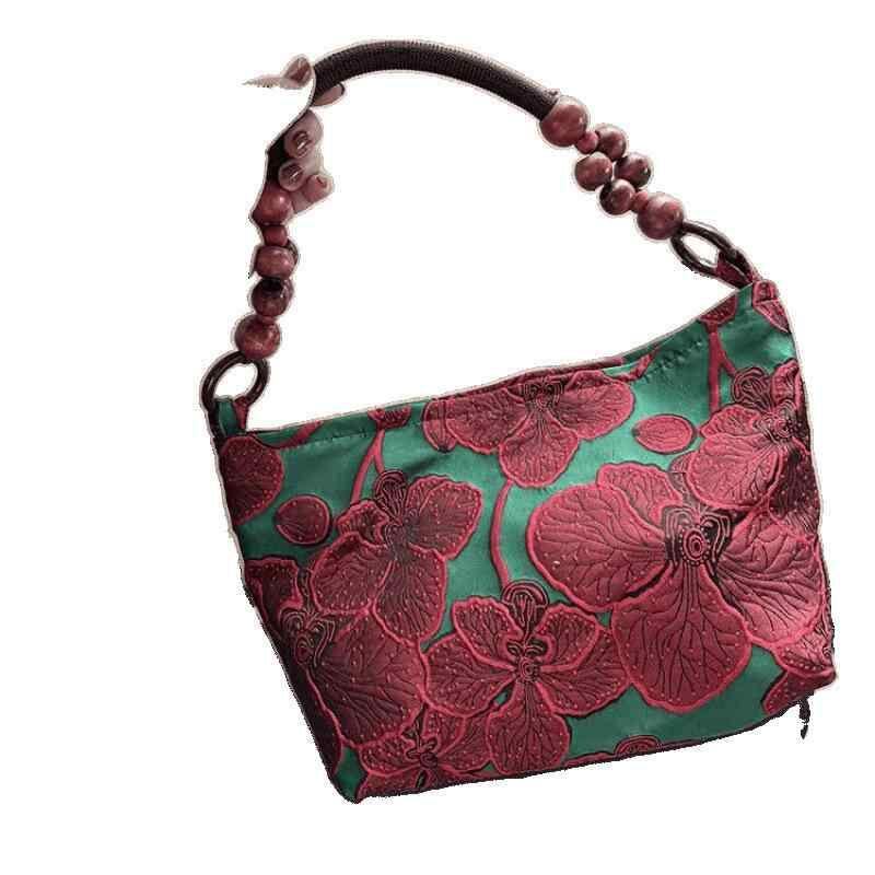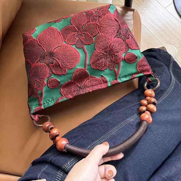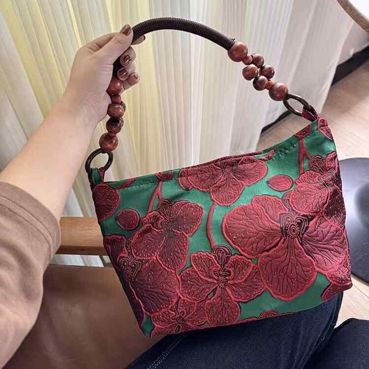 レディース バッグ モダンチャイニーズ レトロ ジャカード 花柄 ショルダーバッグ ハンドバッグ トートバッグ 肩掛け 大容量 おしゃれ 通勤 お出かけ 旅行 普段使い 万能 グリーン レッド