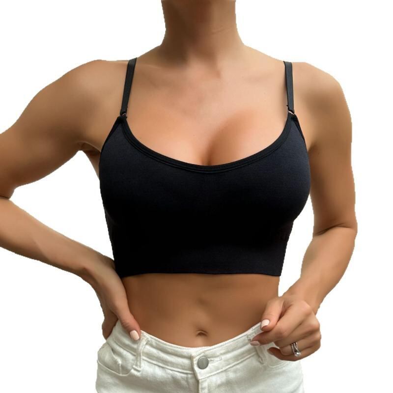 スポーツブラ レディース 大きいサイズ グラマー向け 着痩せ ノンワイヤー パッド付き 寄せ上げホールド シームレス 脇高 脇肉カバー 美背中 ヨガ フィットネス スポーツ インナー ルーム 快適ストレッチ ナイロン ブラック ブラトップ タンクトップ