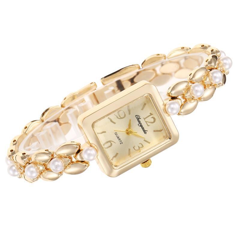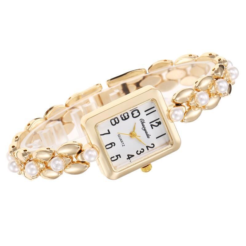 腕時計 レディース 女性用 ファッション おしゃれ 上品 小ぶり スクエア文字盤 クォーツ ブレスレットウォッチ 合金 PUレザーバンド ゴールドカラー