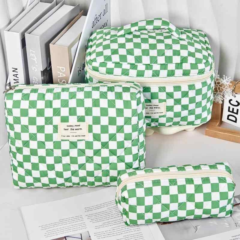 ポーチ レディース 女性用 キルティング チェッカー柄 菱形 大容量 手提げ コスメ トラベル 洗面 収納 オーガナイザー 持ち運び 旅行 日常使い 超軽量 通気性
