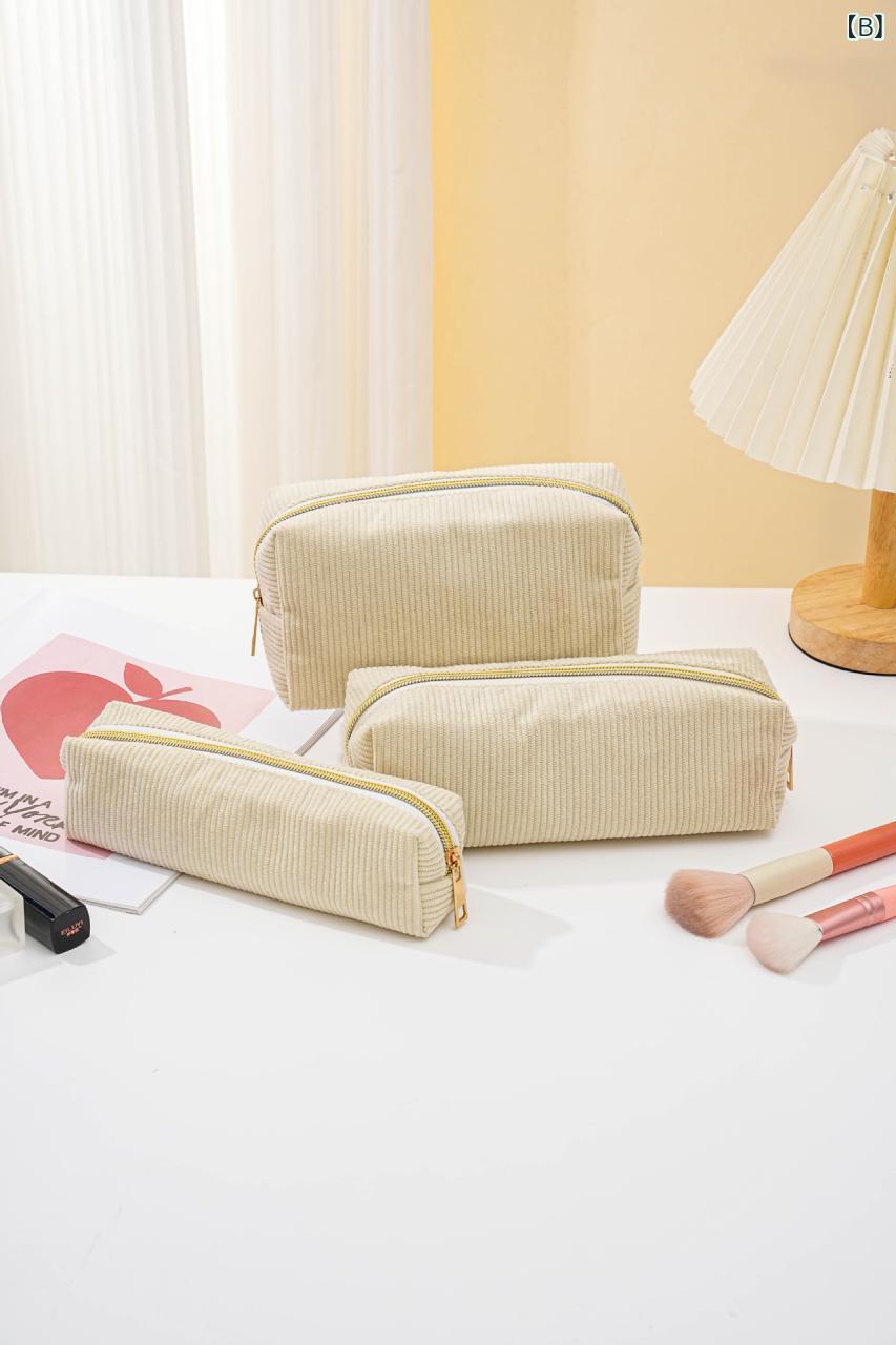 ポーチ レディース コーデュロイ 大容量 かわいい シンプル 韓国風 ペンケース 筆箱 化粧ポーチ メイクポーチ 軽量 普段使い 通勤 通学 旅行 ピンク ベージュ パープル ブラック