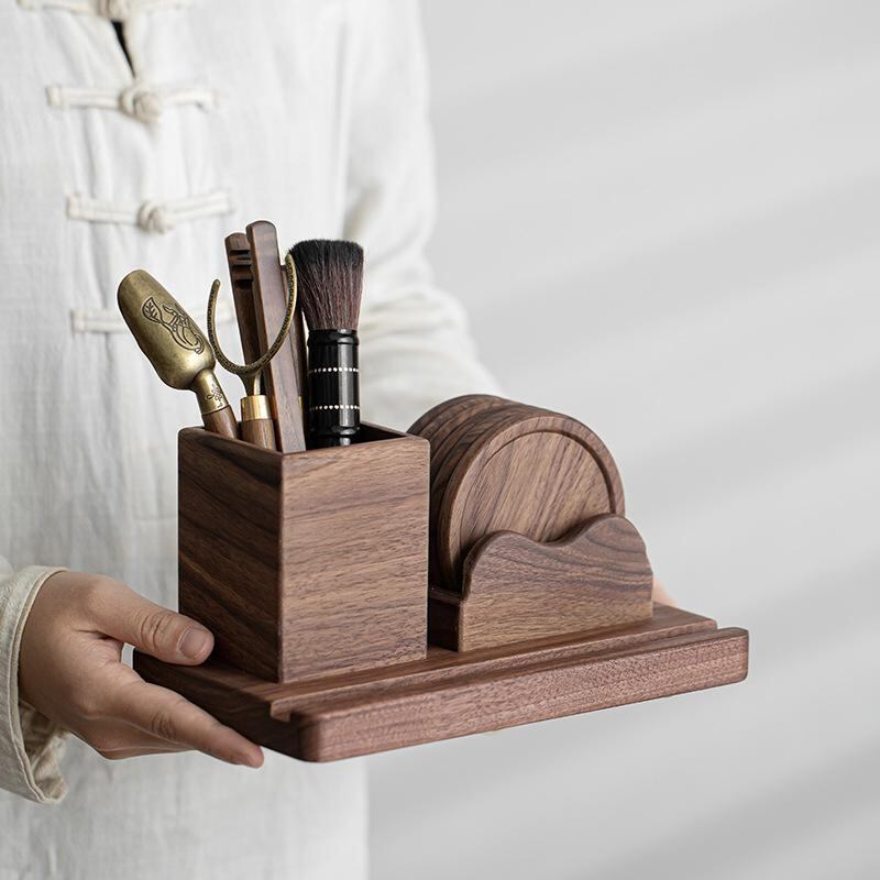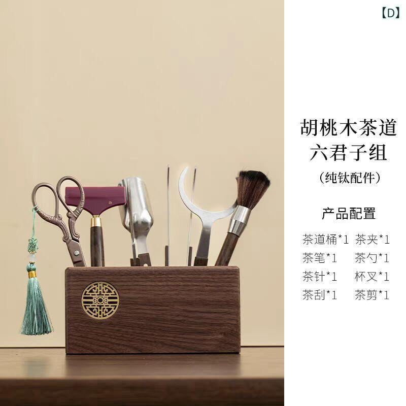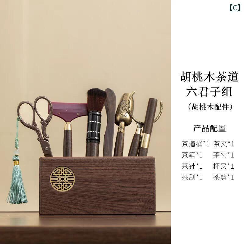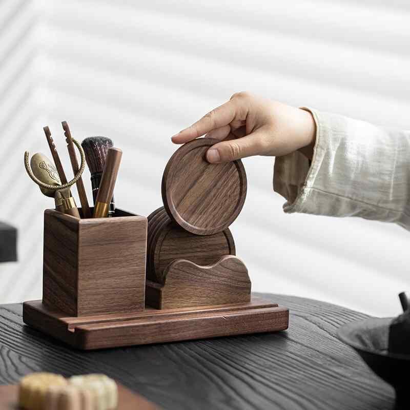 茶器 北米産クルミ材 天然木 無垢材 多機能 茶道六君子6点セット 高級感 コースター 断熱マット 鍋敷き 中華風 お茶会 普段使い