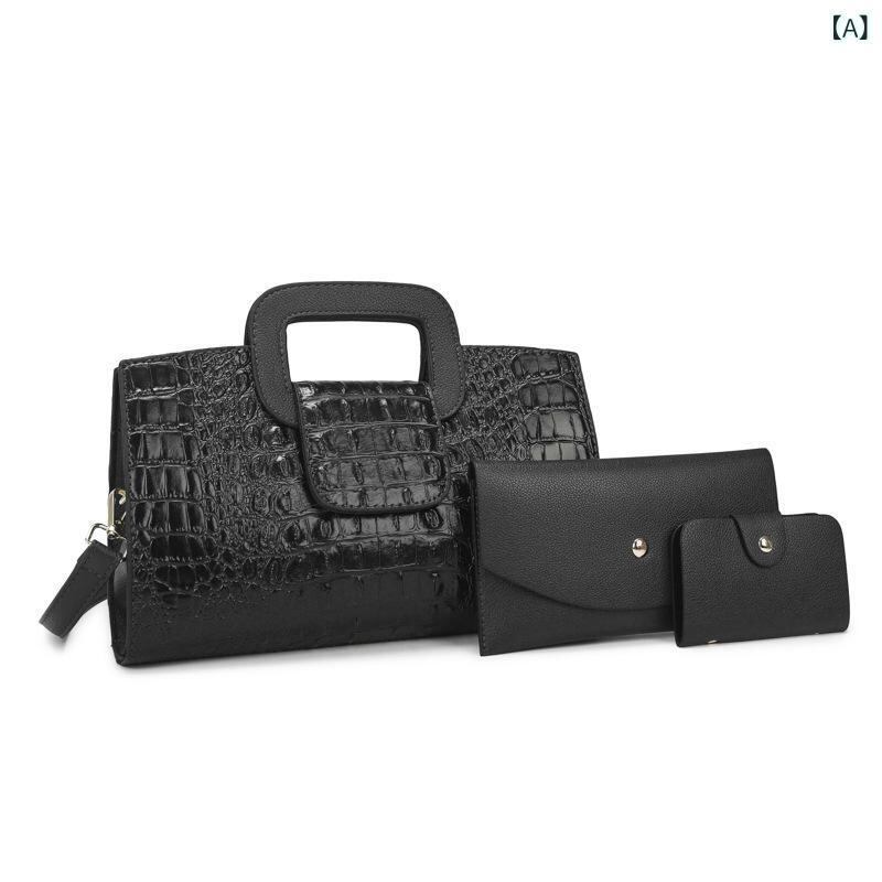 バッグ レディース 高級感 おしゃれ PUレザー クロコダイル柄 型押し 横型 スクエア ショルダーバッグ 斜め掛けバッグ ハンドバッグ トートバッグ 通勤 普段使い デイリーユース やわらかめ