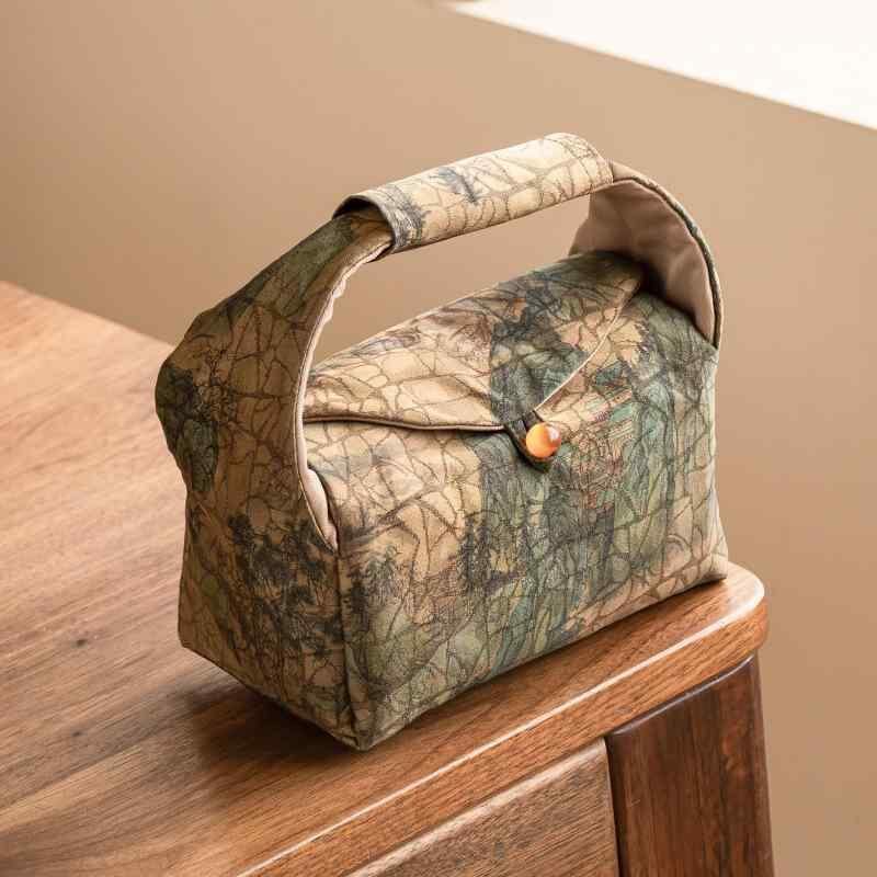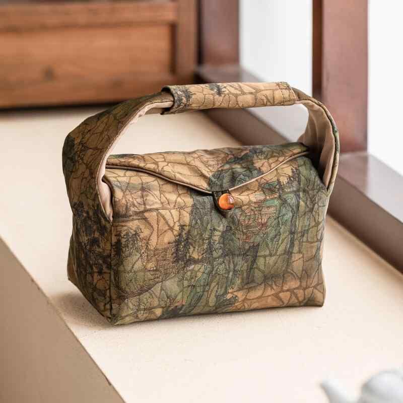 茶道具 収納バッグ 織錦 千里江山図 クラック柄 レトロ 和モダン 高級感 手提げ 携帯用 軽量 コンパクト 旅行 アウトドア キャンプ ピクニック 野点 お出かけ