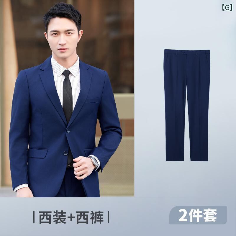 スーツ セットアップ メンズ レディース 男女兼用 ビジネス フォーマル オフィス 通勤 ユニフォーム 制服 営業 接客 サービス テーラードジャケット スラックス パンツ スカート スリムフィット ストレッチ ノーアイロン ポリエステル ロイヤルブルー