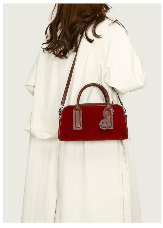 バッグ 女性用 ふわふわ ソフト フェイクレザー ボストン型 ピローバッグ ワンショルダー 肩掛け 手提げ 通勤 通学 大容量 おしゃれ ステッチデザイン 黒 ライトブラウン レッド