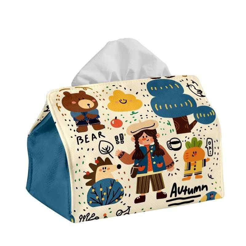 ティッシュケース 帆布 キャンバス 秋イラスト柄 かわいい キャラクター おしゃれ 家庭用 リビング ベッドサイド 車載 卓上 収納 高級感 防水 多機能
