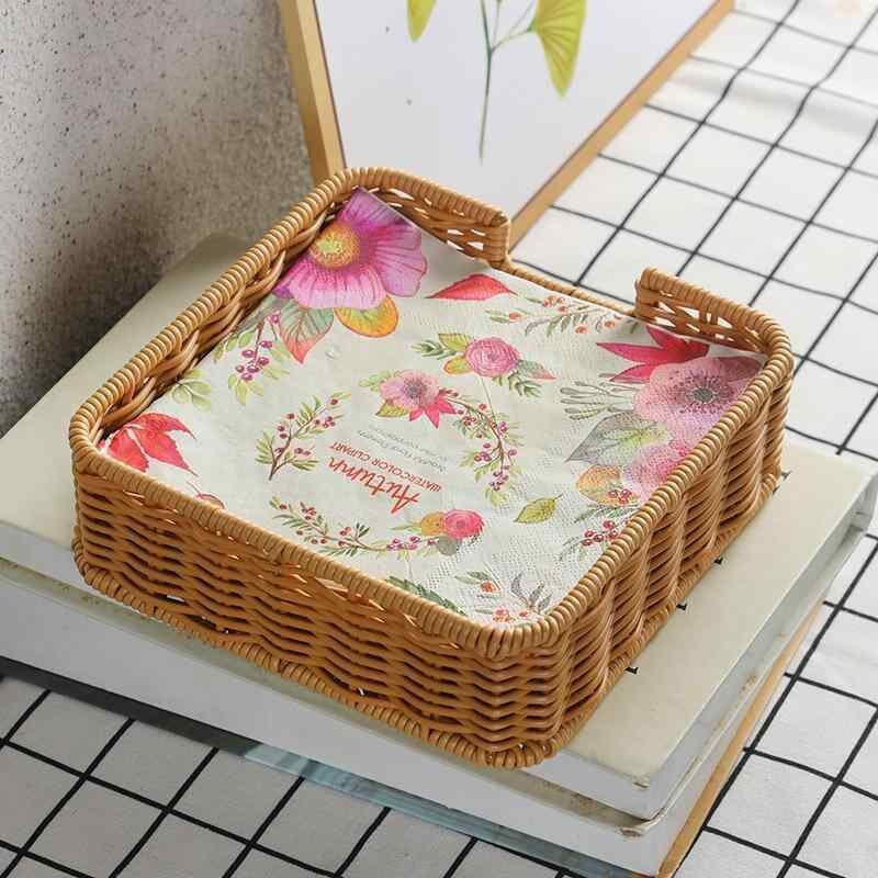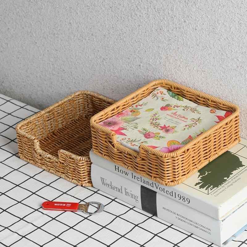 ティッシュケース 北欧スタイル 正方形 スクエア型 ラタン風 プラスチック製 高級感 上品 エレガント ホテルライク 家庭用 リビング ダイニング オフィス 防水 多機能 収納ボックス ブラウン 茶系