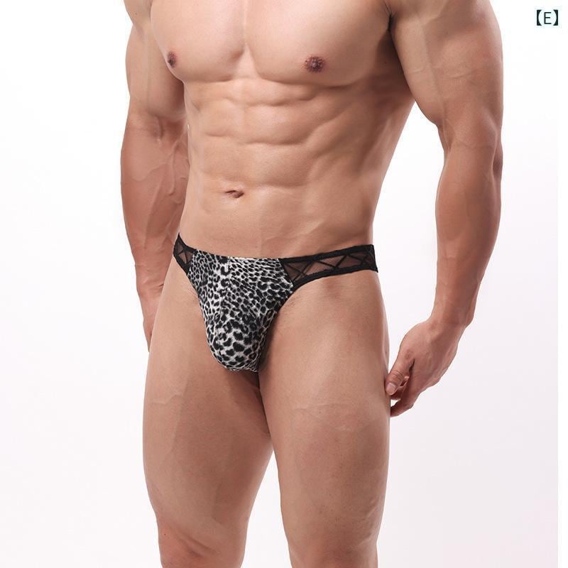 Tバック メンズ Gストリング 男性用 ヒョウ柄 アニマル柄 セクシー 接触冷感 シースルー 透け感 通気性 ローライズ 立体ポーチ ポリエステル 下着 インナー ナイトウェア
