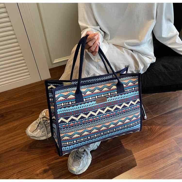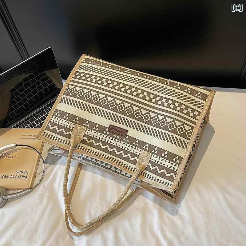 バッグ レディース レトロ エスニック キャンバス 大容量 トートバッグ 肩掛け 手提げ おしゃれ シンプル 通勤 マザーズバッグ 春夏 旅行 カジュアル ファスナーポケット 黒 青 カーキ